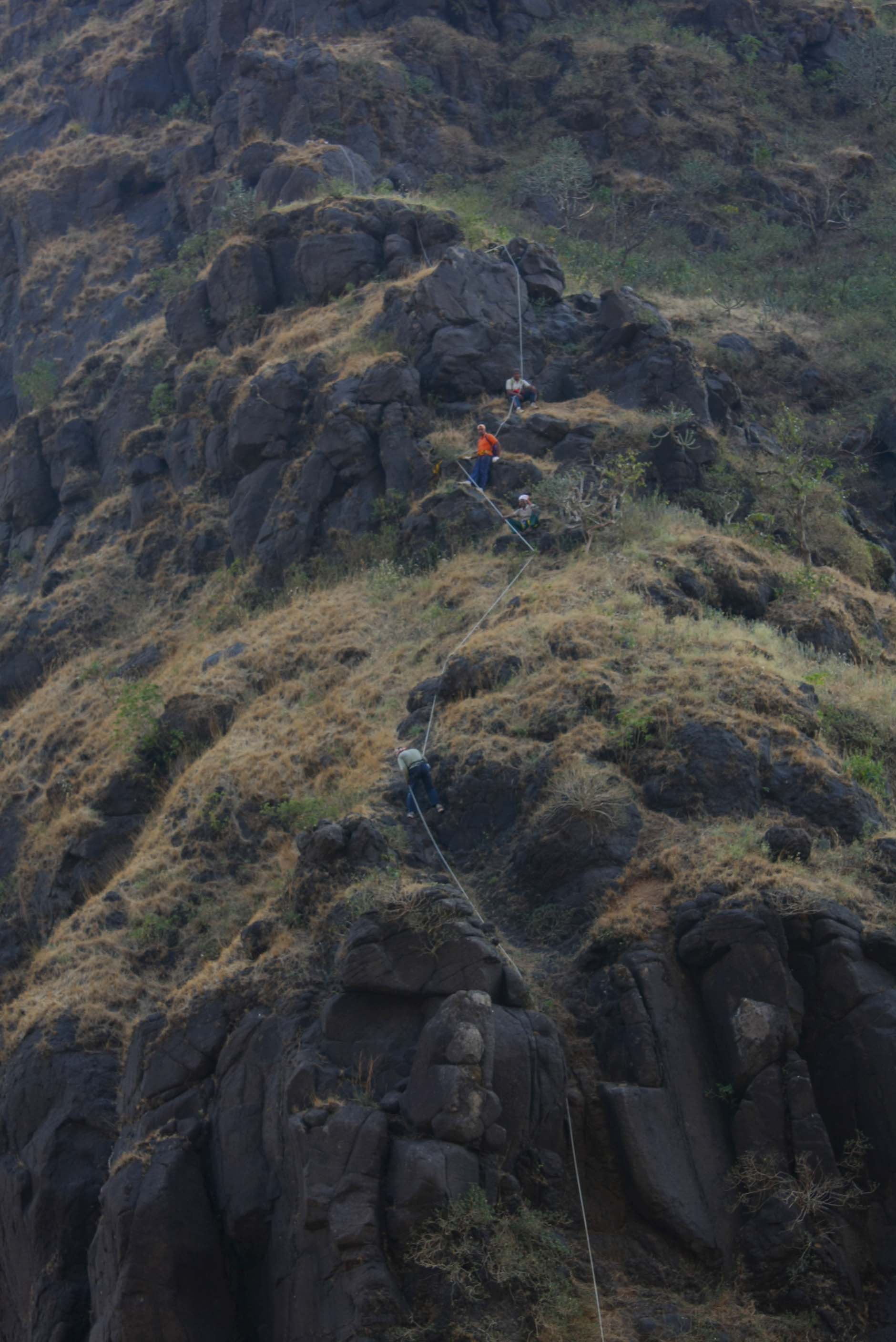 Thus we had the rope fixed till around 3/4 th of the way up..or maybe something between half and 3/4th…we hadnt managed to reach the water point..so now,we