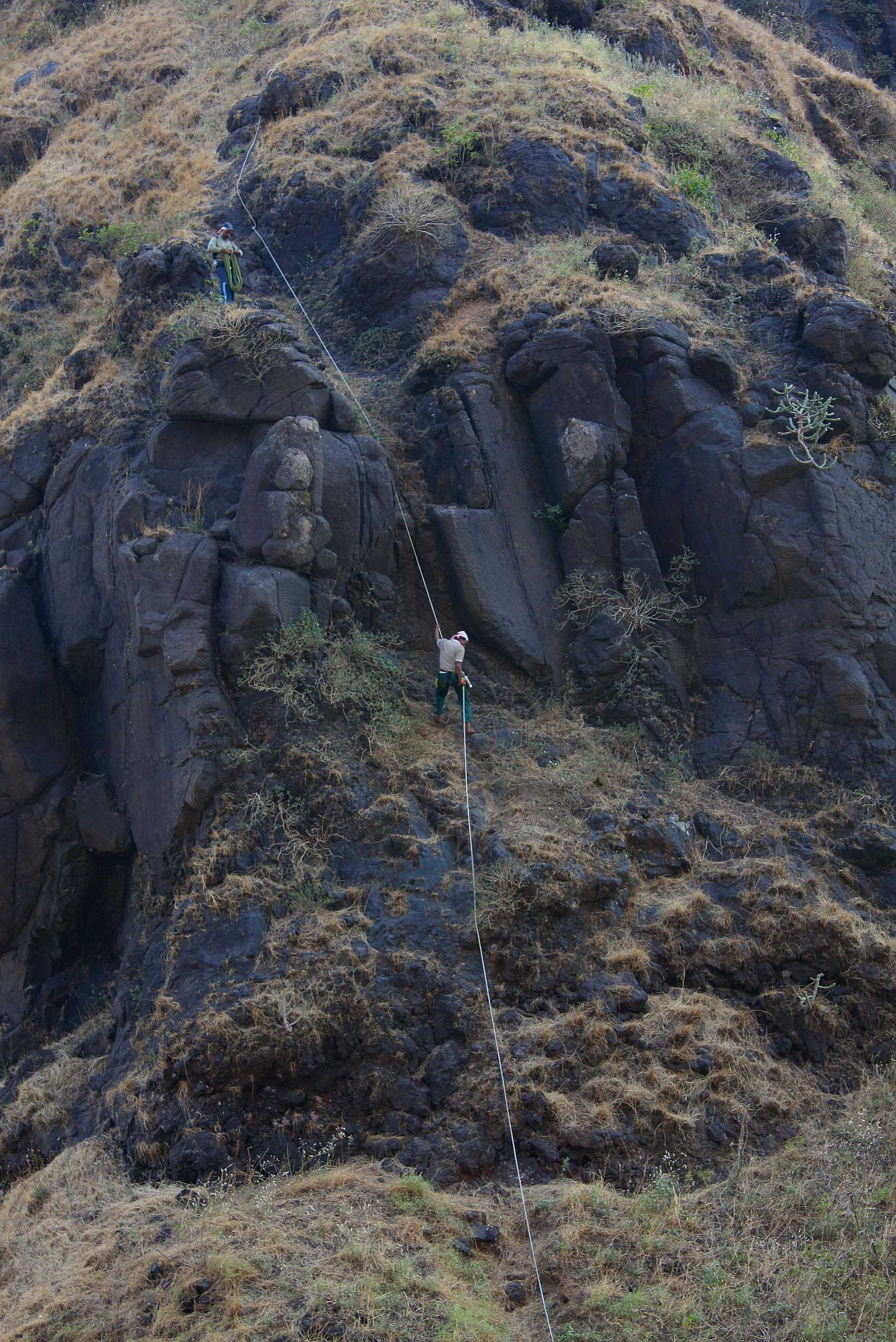 from belapur climbed 3/4th pinnacle without a rope 3-4 days after us..risky businees,but im all admiration for them..)…there was rock patch at the end of