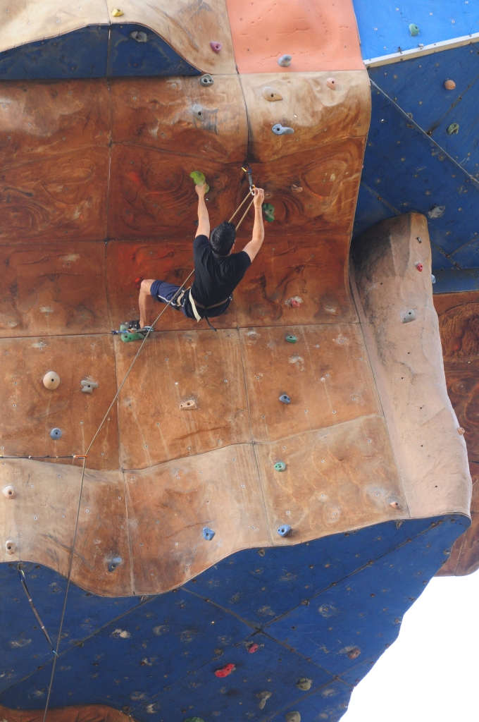 But I am digressing as i wanted to make this post more about weekend experiences at IMF than anything else about it. There are 4 climbing walls in the premises and a bouldering wall at the back side. The climbing walls are aimed at different styles of climbing. So in the front we have a lead climbing wall, on the left hand and back side, there are top roping walls with various levels of grading and on the right hand side lies the speed climbing wall. I mostly spent my time on top rope and in bouldering but by the end of November, I had started attempting the lead climbing wall.