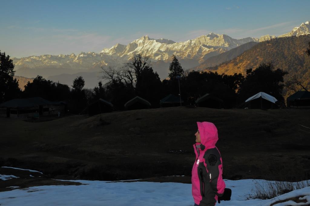 There’s a nice campground called Magpie campground with tented accommodation just a short hike away from Maya Deep. After reaching Hotel Maya Deep in the afternoon, we had hiked up to this beautiful place and gotten a majestic view of the snow clad ranges at the sunset. It was a fabulous sight!