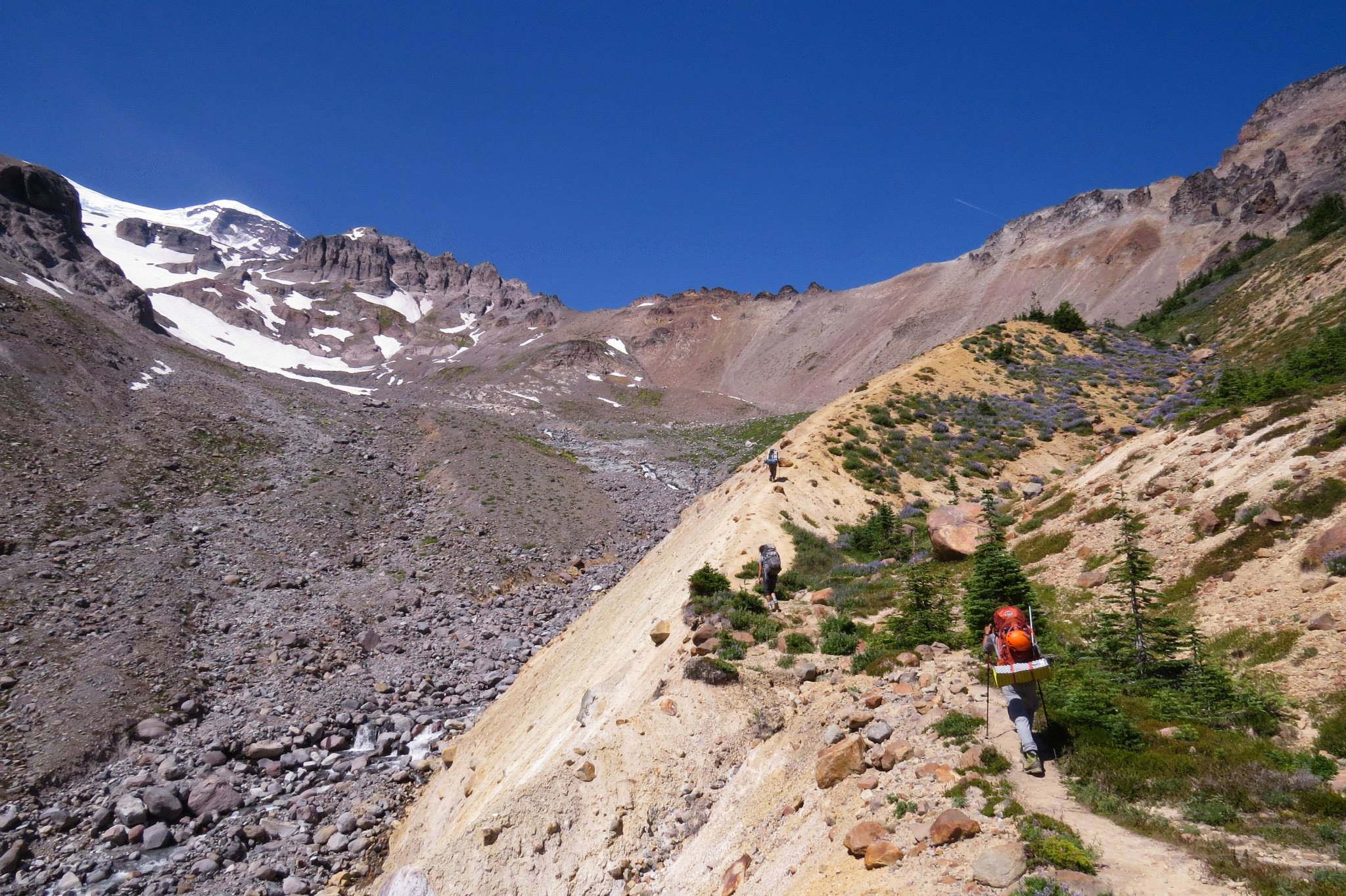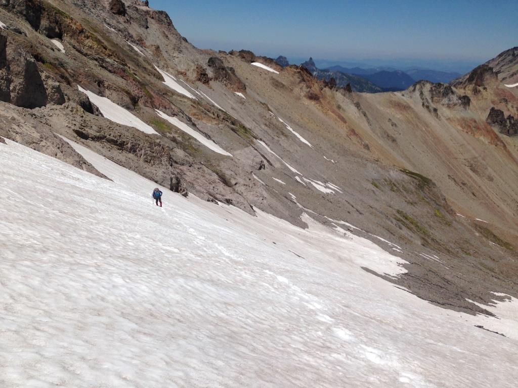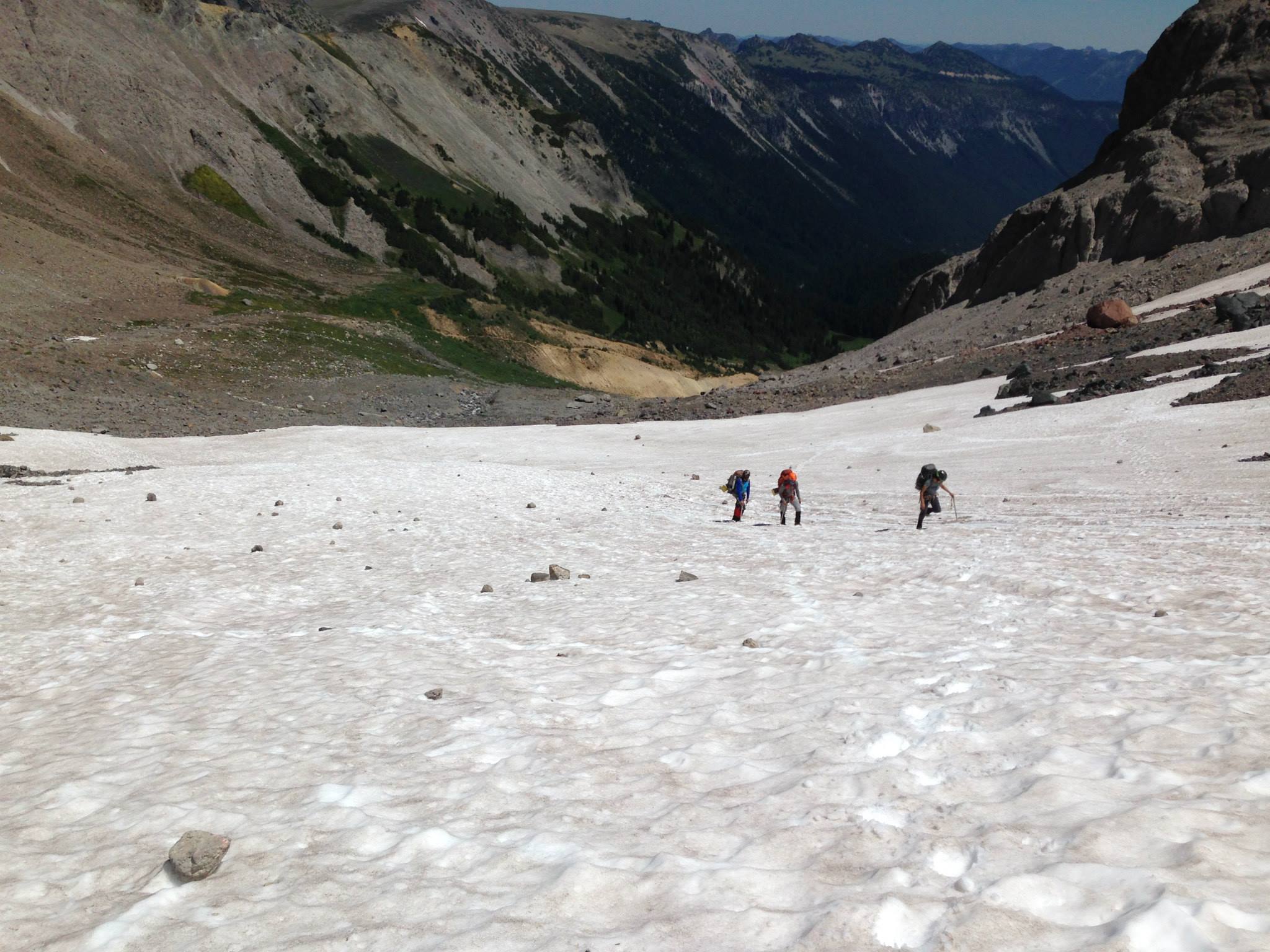 We were supposed to climb down to Emmon Flats by noon, wrap up our belongings and then head back all the way to the White River campground by late evening.