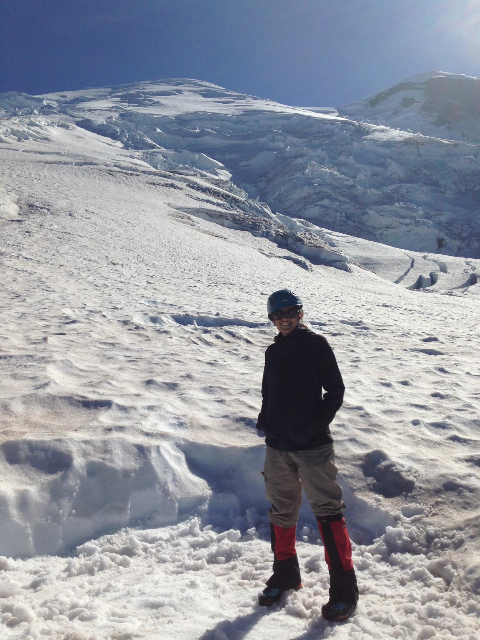 Standing on the ridge just before beginning the walk up the Emmons Glacier, with Rainier behind me