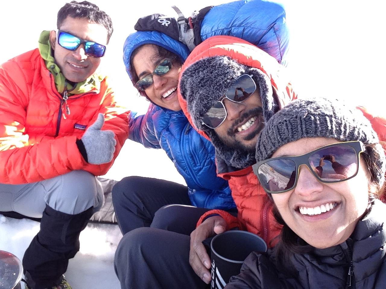 I don’t have any pictures of the summit climb as we were roped up the whole time and passed through some very dangerous terrain. We stopped only few times and that too only within the safe zones. Suffice it to say that this was probably the most technical and scary climb, among the 3-4 high altitude summit climbs that I have done or attempted so far. I had a great time and although I struggled in between to keep up a good pace, the experience has made me more confident about my mountaineering abilities.