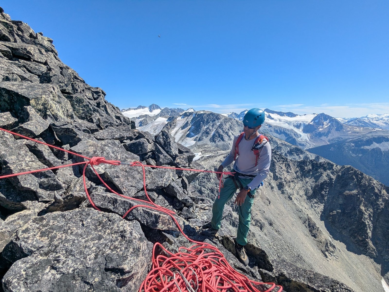 Shashi led the initial section and then at some point, I found myself in the lead. The route finding was fairly straightforward, even though the loose rock meant the movement was slow. For the rest of the climb, Shashi let me stay in the lead and I felt grateful for the opportunity to practice and gain experience. It’s the mark of a great climbing partner when they implicitly know what you need to learn and grow and generously offer you that space. Even though I fumbled a bit with rope management and walked away with a few lessons there, being on the sharp end was invaluable for building confidence.