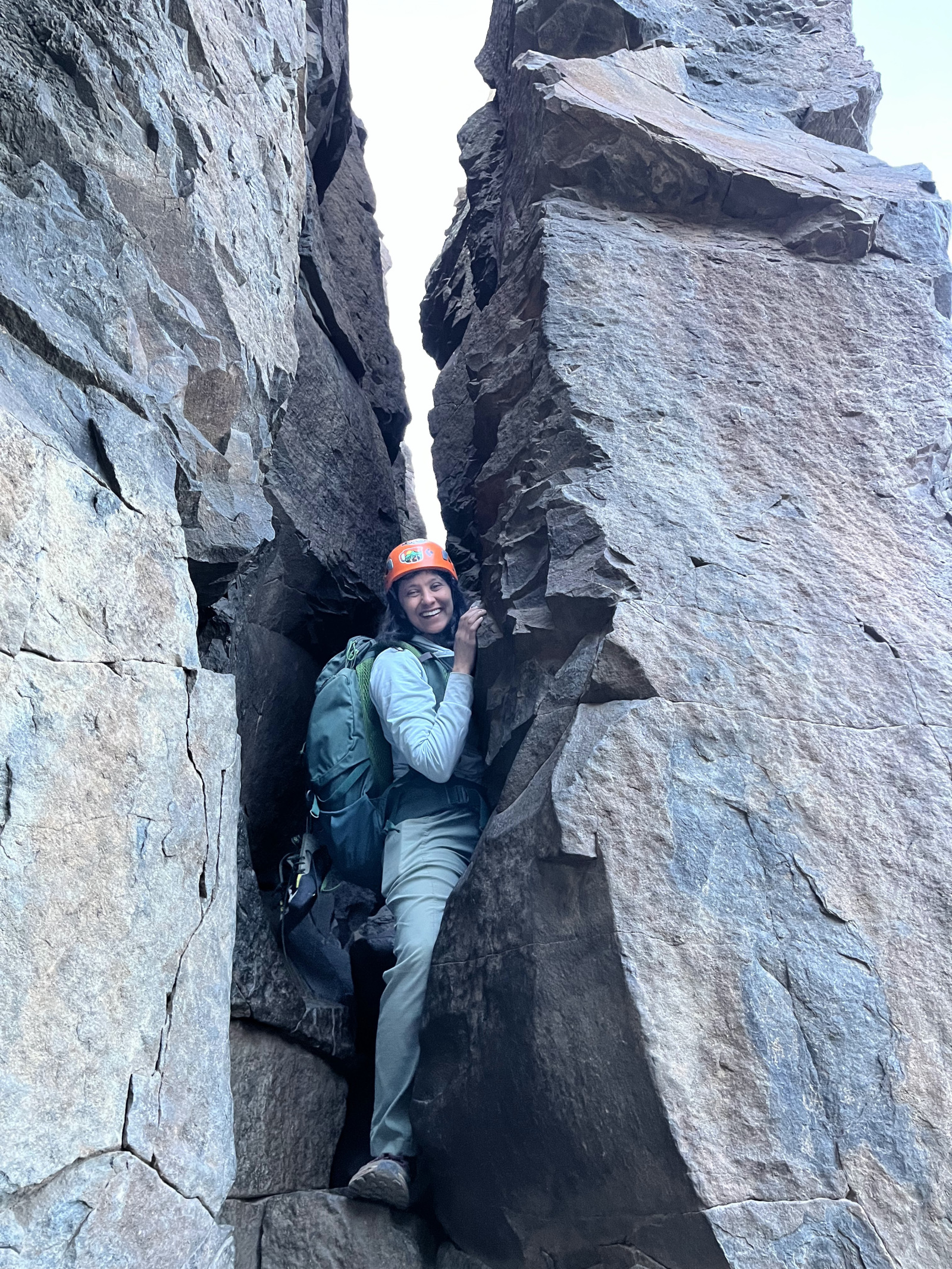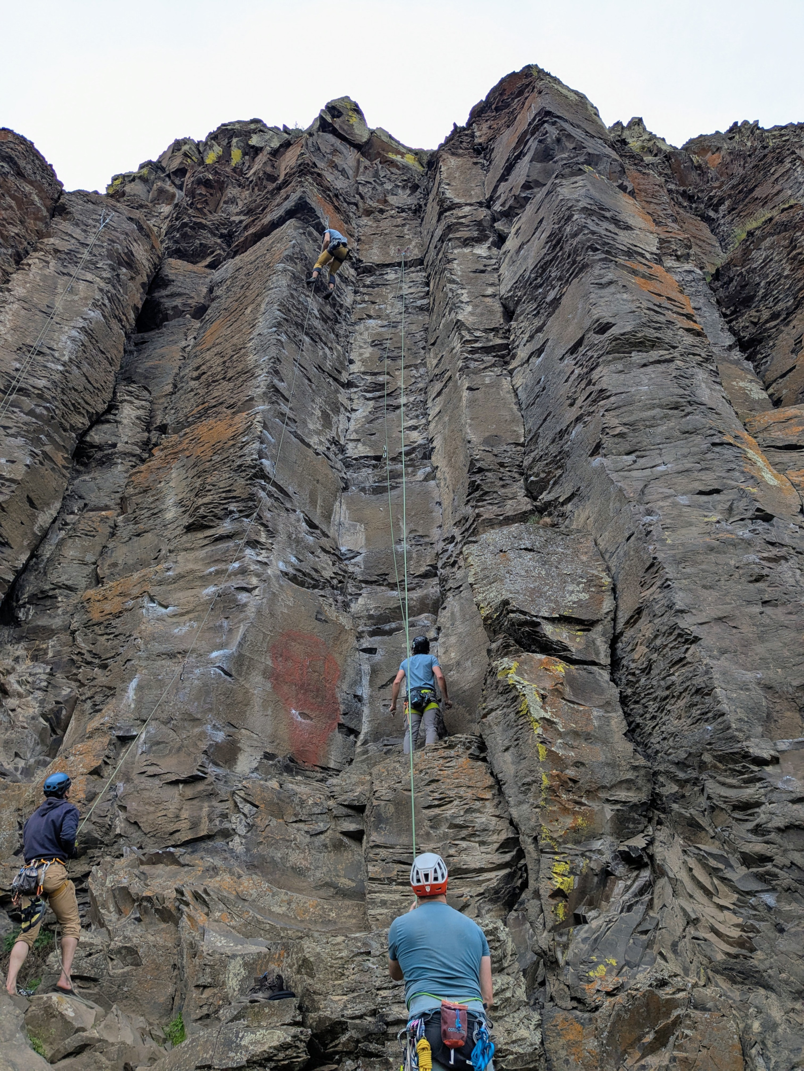 All three of us were getting back to outdoor cragging after a while, so we started with really easy routes in the 5.fun range to get comfortable with the grooves, jugs, and crimpy features of the rock. We eventually moved on to 5.8/5.9 routes on faces and aretes. Nikita was the default rope gun for our group while Mai and I sometimes led and other times top roped. The routes felt a bit pumpy for their grades, or maybe it was just the lack of recent practice and the newness of the rock texture that made them feel that way.
