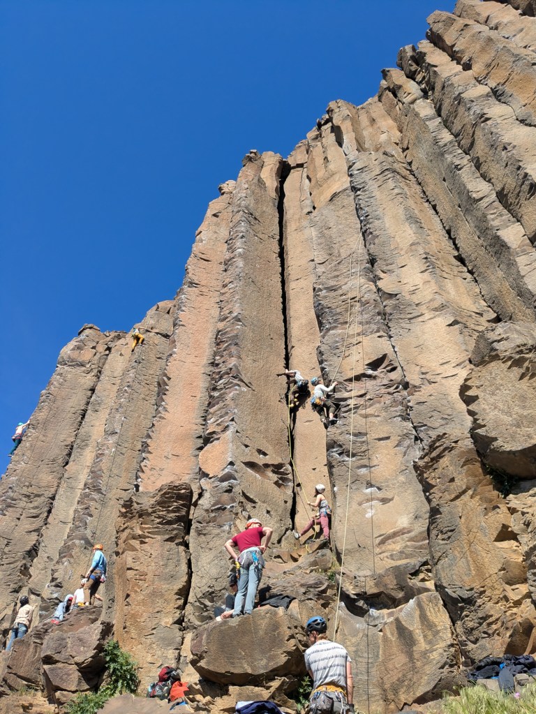 Sunshine Wall is a large crag with solid routes for every level. It is also one of the busiest. It took us a while to get our bearing and find routes that were available. The routes here are long, and one can’t help but admire the seemingly endless row of wavy columns stacked next to each other. Between the textured faces and the cracks between adjacent columns, there’s no dearth of sport and trad routes for climbers of all levels.
